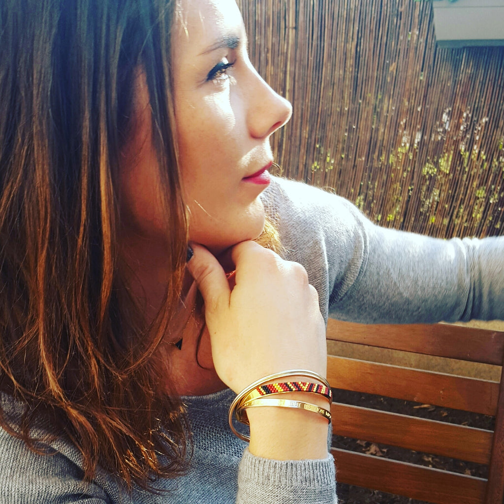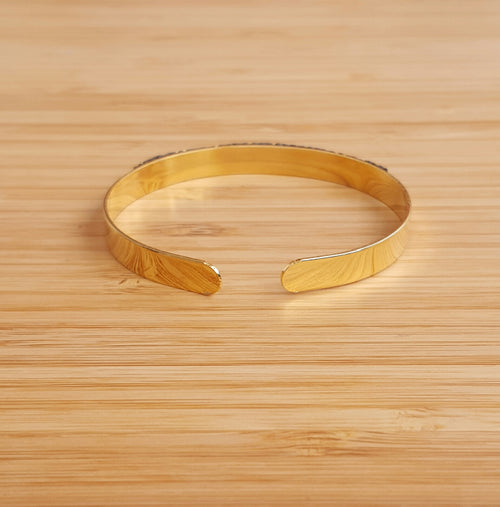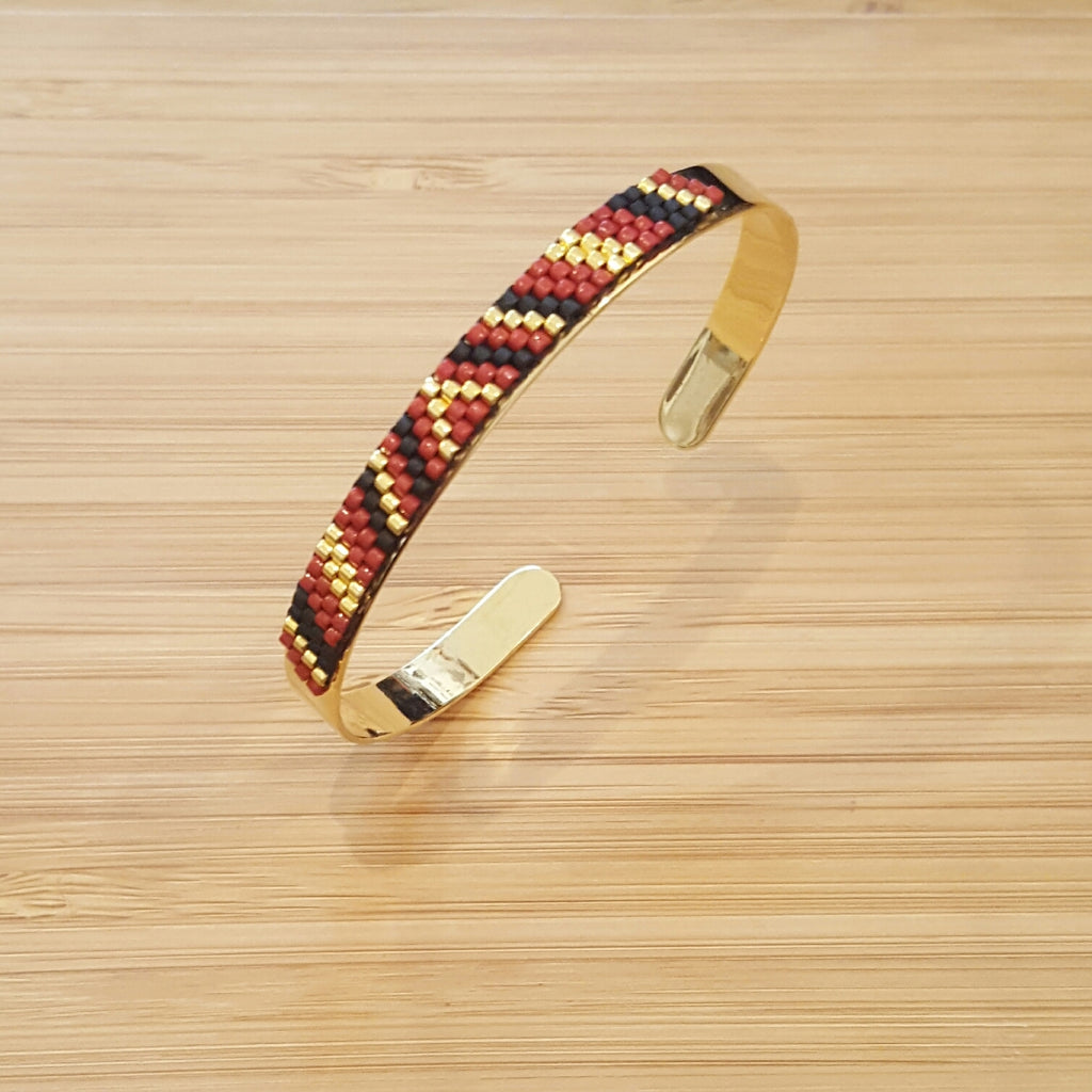 Bracelet jonc en laiton doré à l'Or fin 24 carats orné d'un tissage en perles de verre japonaises cousues-main.